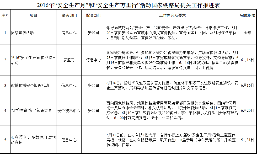 國家鐵路局關于印發2016年“安全生產月”和“安全生產萬里行”活動實施方案的通知