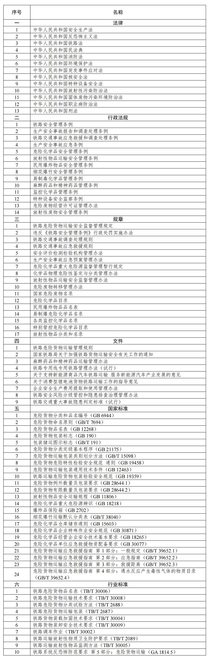 1.《鐵路危險貨物運輸安全監(jiān)督管理規(guī)定》。
