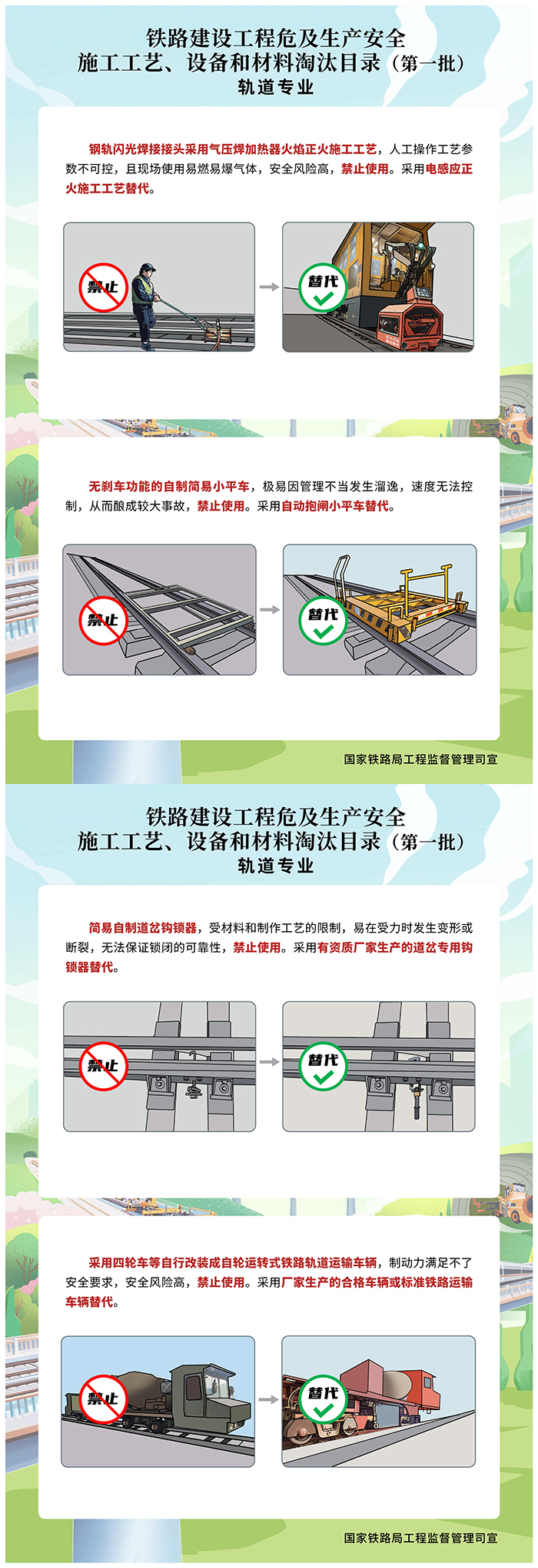 《鐵路建設(shè)工程危及生產(chǎn)安全施工工藝、設(shè)備和材料淘汰目錄(第一批)》宣傳海報(bào)