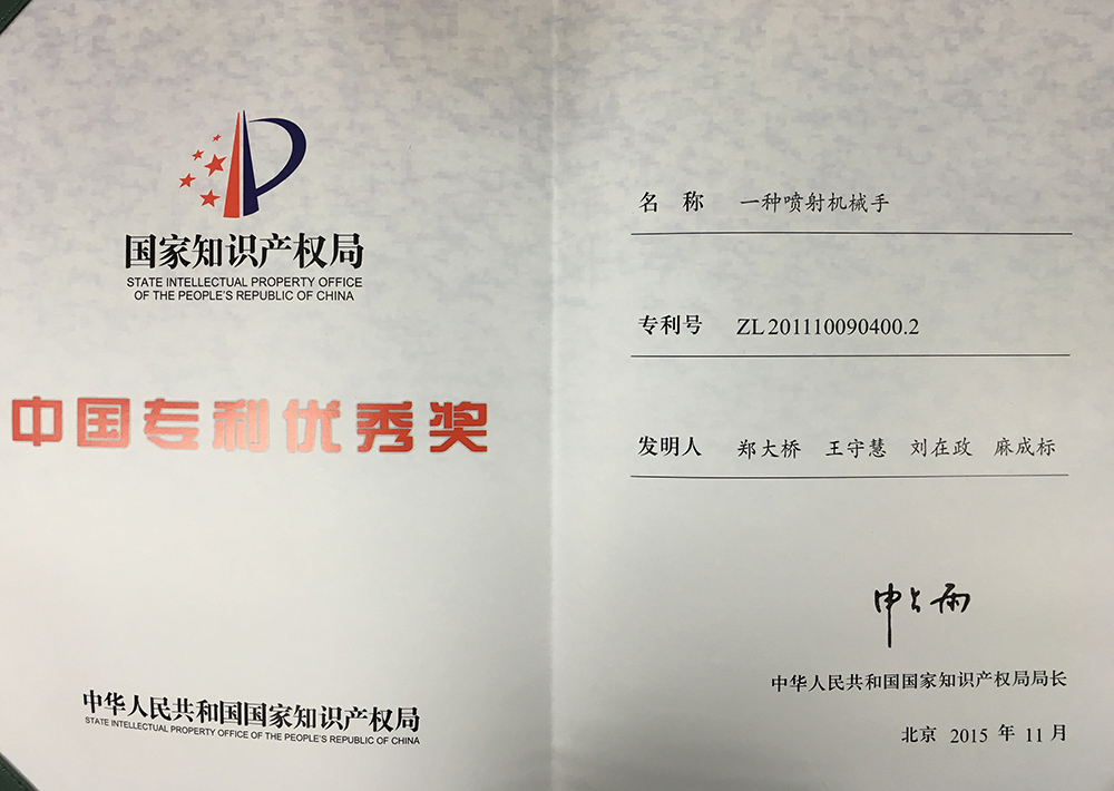 近期,國家知識產權局發布《關于第十七屆中國專利獎授獎的決定》(國知發管字〔2015〕67號),由我局組織推薦的“一種噴射機械手”專利榮獲第十七屆中國專利優秀獎。